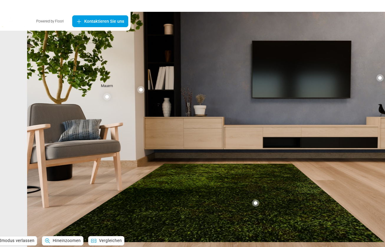 Unser Pilotkunde ist Händler von Teppichen, Teppichbodenbelägen etc. und möchte diese über Augmented Reality räumlich darstellen. Der Besucher kann entweder zwischen Standard-Räumen wählen oder eigene Bilder einfügen und sich die Artikel in seinem eigenen Zimmer angucken.